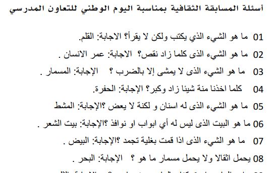 مجموعة من نماذج المسابقات الثقافية تقدم في الأسبوع الوطني للتعاون المدرسي موقع الأساتذة والتلاميذ للتعليم عن بعد