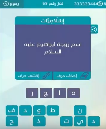 اجابة لغز اسم زوجة ابراهيم عليه السلام من لعبة وصلة المجموعة الثامنة لغز رقم 68 صقور الإبدآع