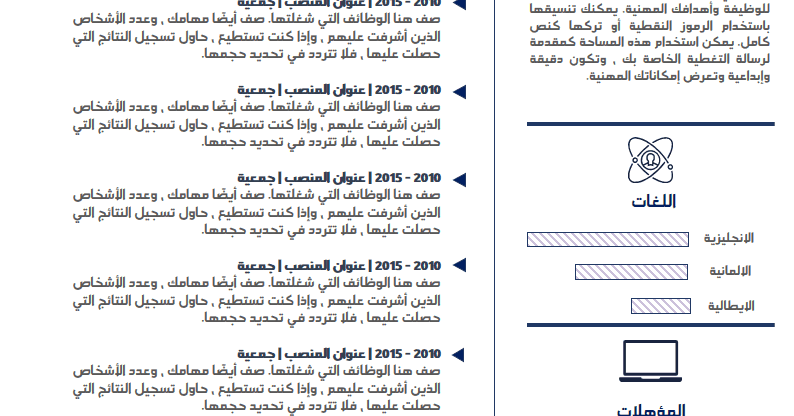 اكثر من 150 C V سيرة ذاتية جاهزة قابلة للتعديل باللغة العربية والانجليزية