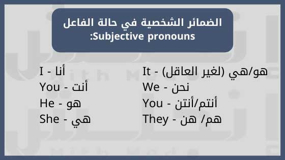 ضمائر الفاعل في اللغة الانجليزية Subject Pronouns