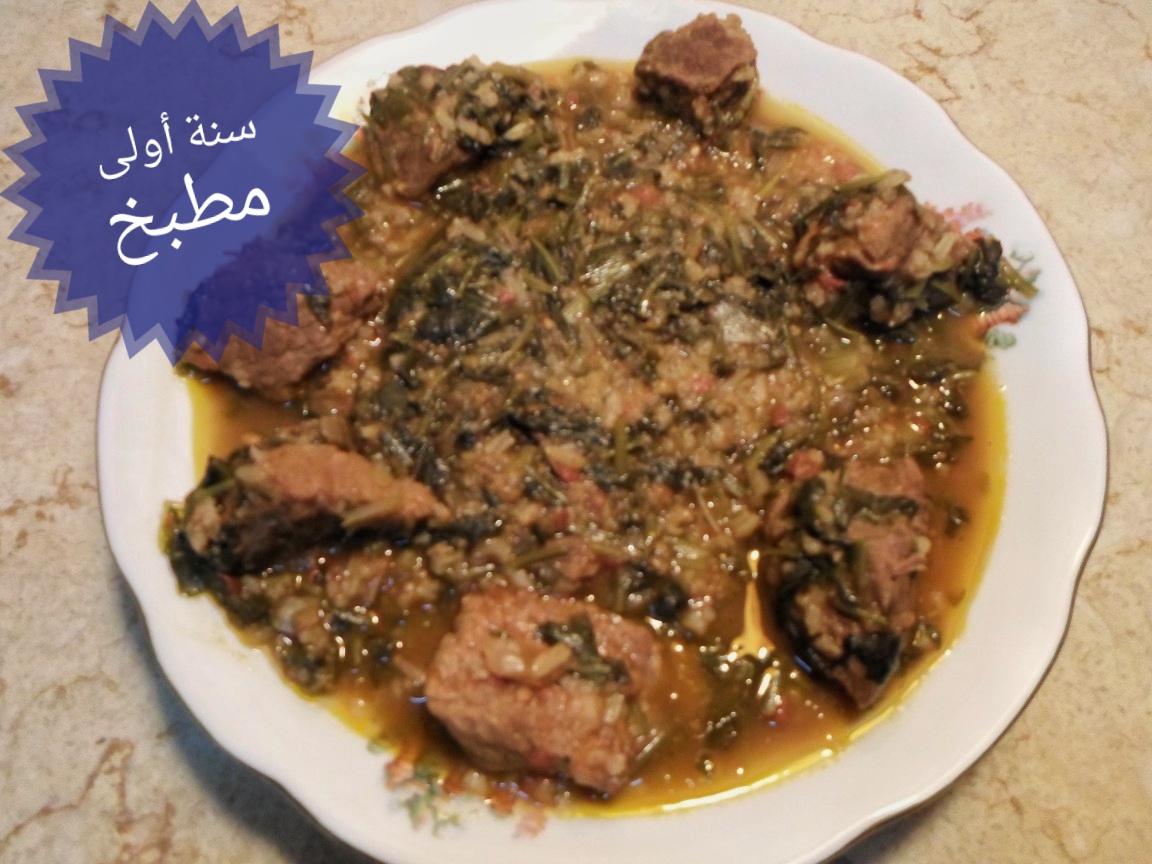 طريقة عمل السبانخ باللحمة مع طشة الثوم بالطريقة التقليدية المصرية سنة أولى مطبخ