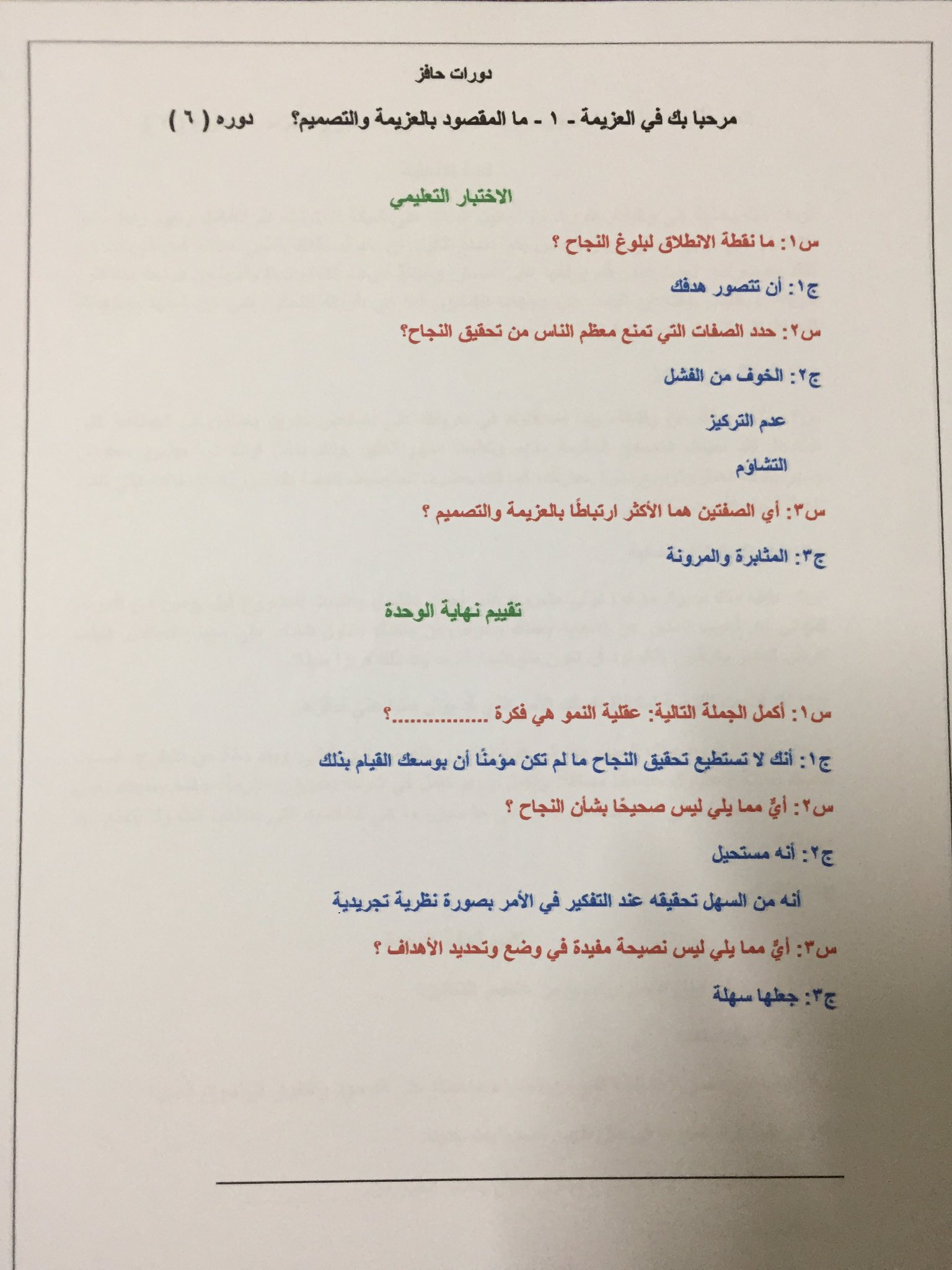 حافز Hafez On Twitter حل دورات حافز العزيمة 1 ما المقصود بالعزيمة والتصميم