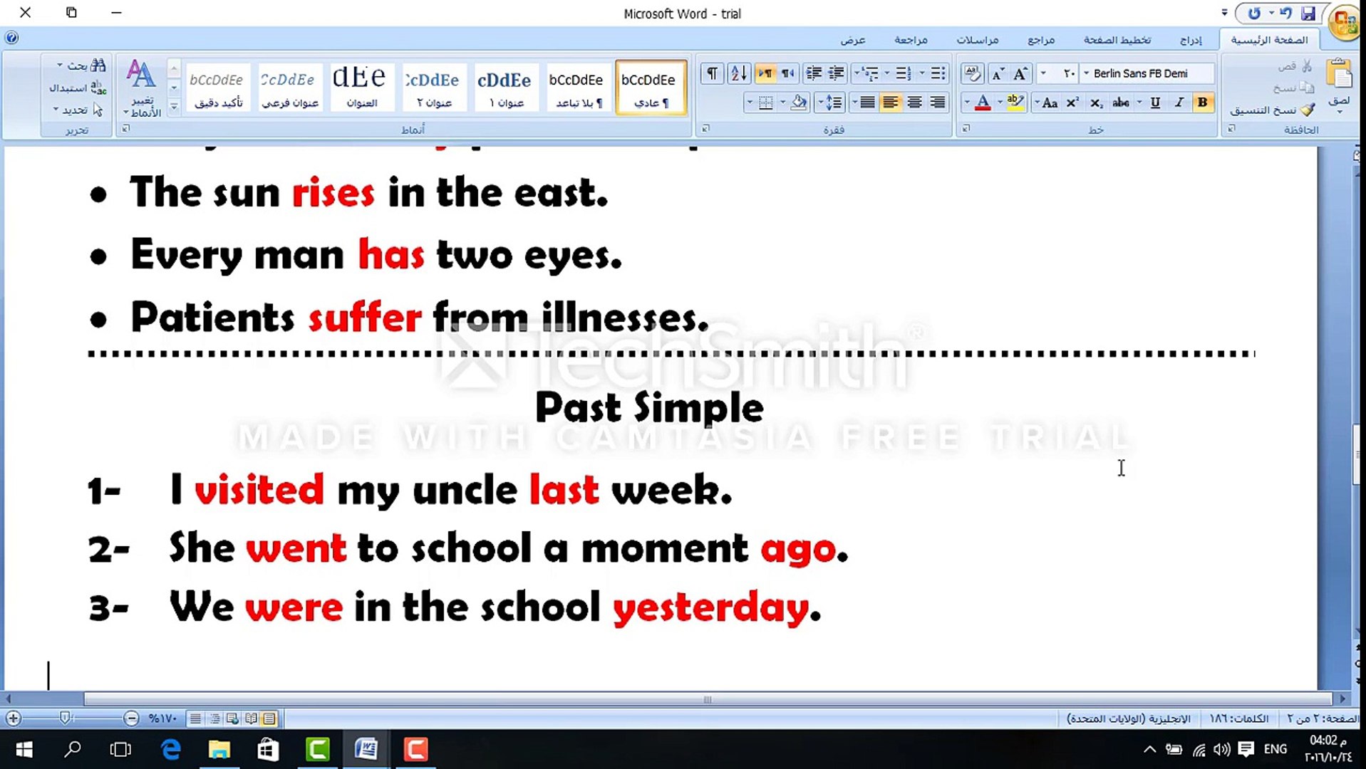 شرح قواعد اللغة الانجليزية زمن الماضي البسيط في اللغة الانجليزي Past Simple Tense Youtube