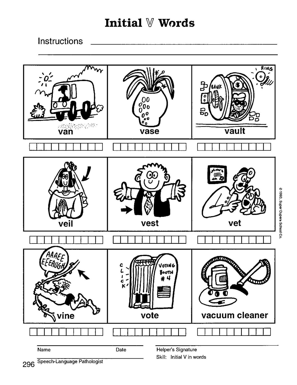 V Initial Sounds Initial Sounds Articulation Worksheets Initial Sound Activities